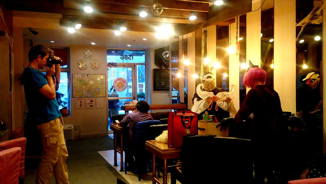 Samesun Montreal Central旅馆内。由于是鬼节将近,旅馆内的小伙伴玩的不亦乐乎。
