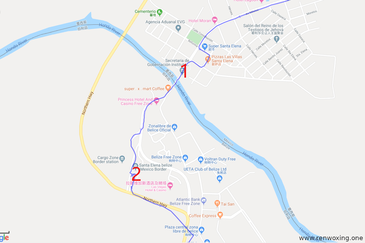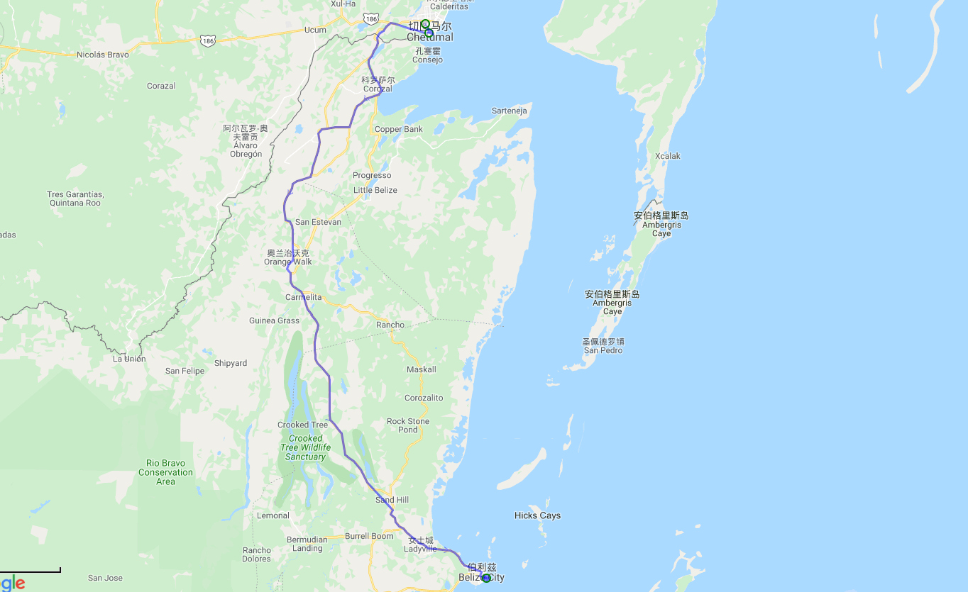 这是这次从墨西哥的chetumal到belize city记录的GPS轨迹。