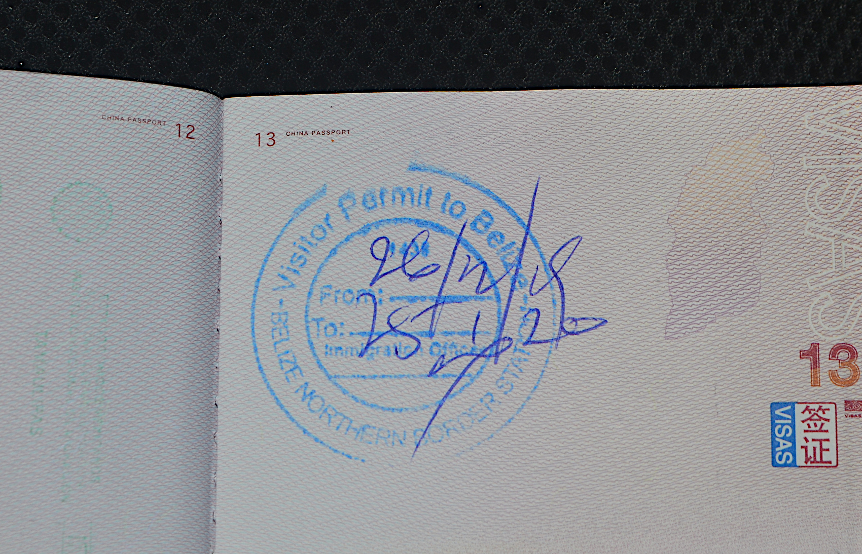 到达belize海关处,填写相关的表格,并出示美国签证后,海关的官员把我的美国签证拿到里面的办公室,一会就出来了(可能到里面的办公室确认我美签真假或咨询他们的老大),然后什么都没有问,也没有要求交签证费,就直接盖章让我入关了,给了我30天的停留期(我填表时,也是写了30天的停留期的)。