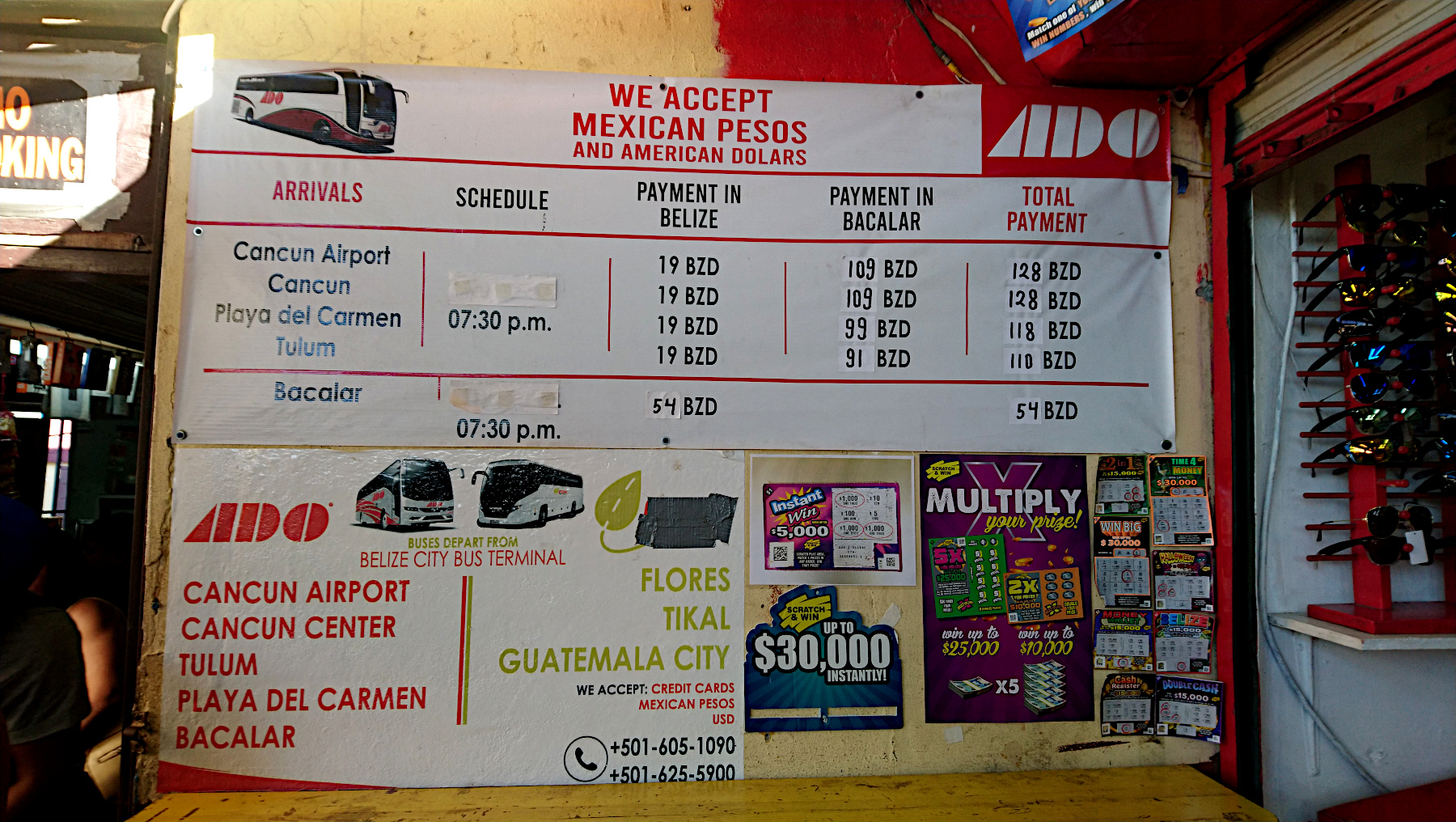 另外从novelos bus terminal看到,墨西哥的坎昆,playa del carmen, tulum,bacalar和belize city, 都有直达的ADO大巴。