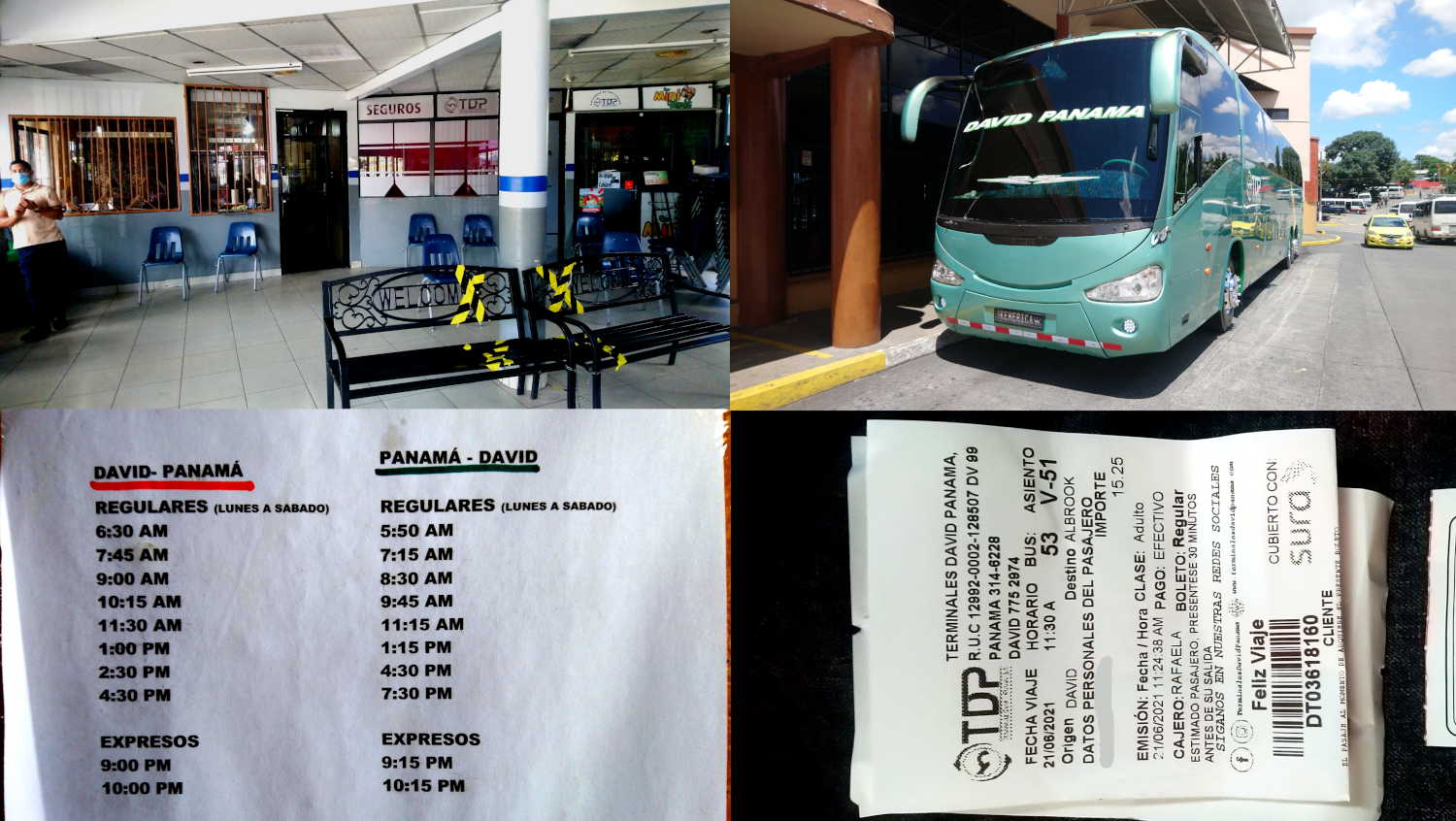 到panama city, 可坐TDP大巴,从6:30AM---4:30PM, 票价15.25美金,耗时7--8小时,发车时间见下图。