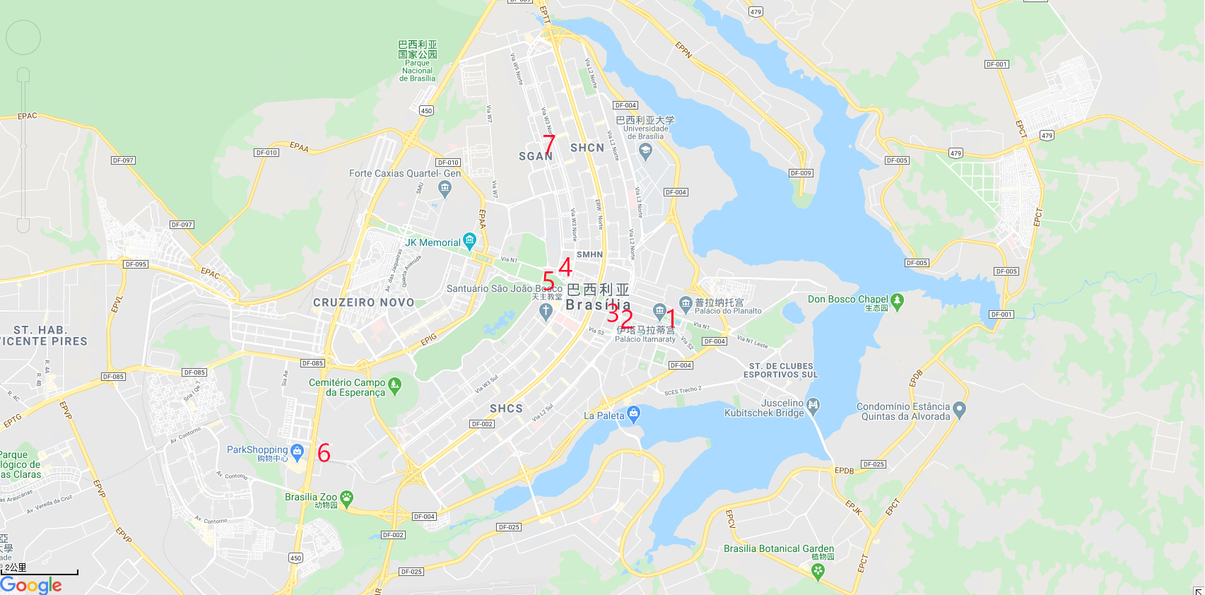 长途交通,在市区中心西南面7.5公里的巴西利亚联合车站。
