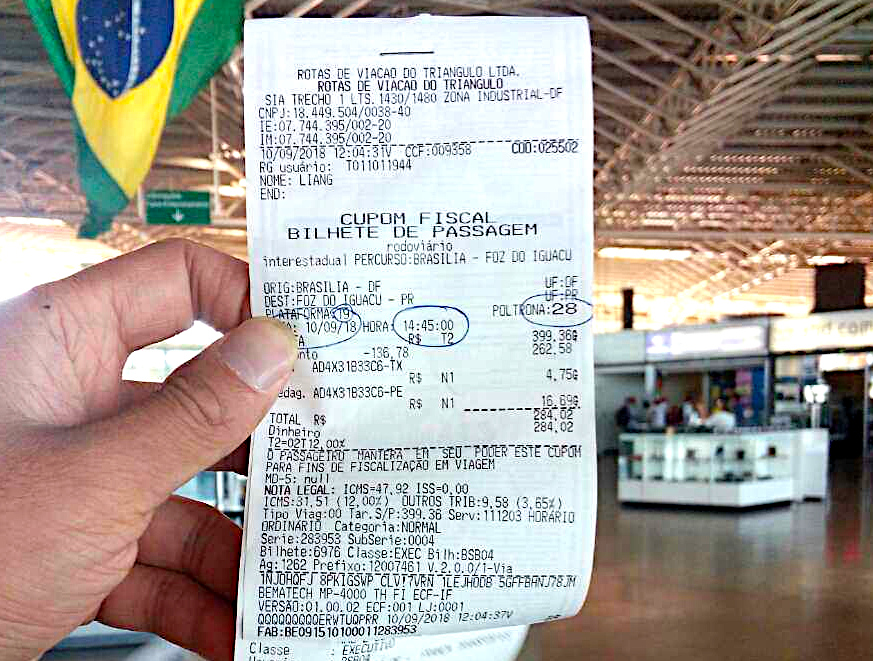 去伊瓜苏的大巴车票,284巴西币