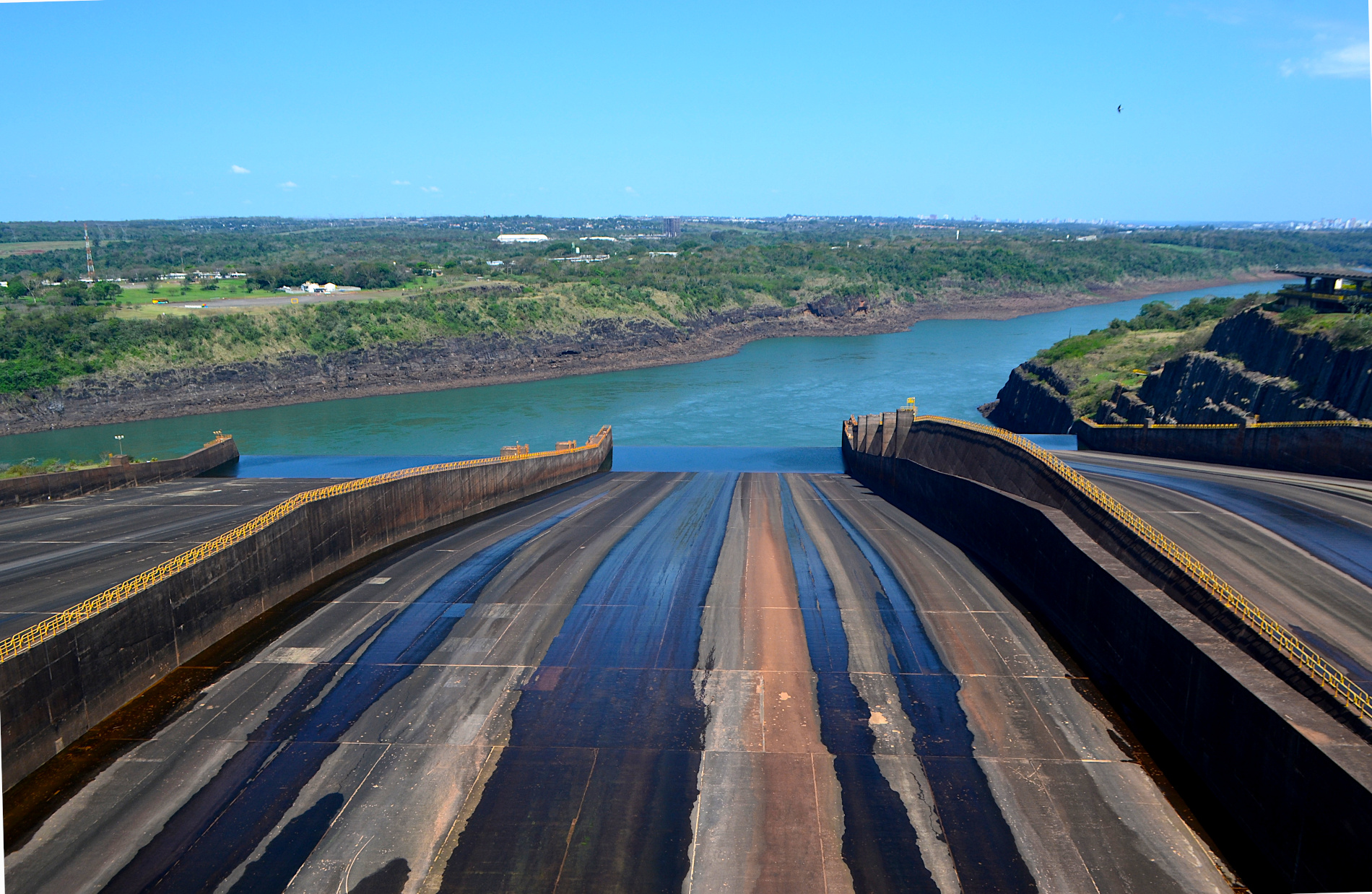 伊泰普水电站。位于巴西与巴拉圭交界的巴拉那河上,在友谊桥(巴西-巴拉圭)以北15 km(9.3 mi)。工程的范围是从巴西的伊瓜苏到巴拉圭的东方市,南边到瓜伊拉与北边到萨尔托德尔瓜。该电站的发电装机容量为14 GW,20台发电机组,为每个700 MW与液压设计水头是118米(387英尺)。在2013年,该发电厂发电产生创纪录的98.6 TWh,供应了巴拉圭的电力消耗的75%和巴西的电力消耗的17%。