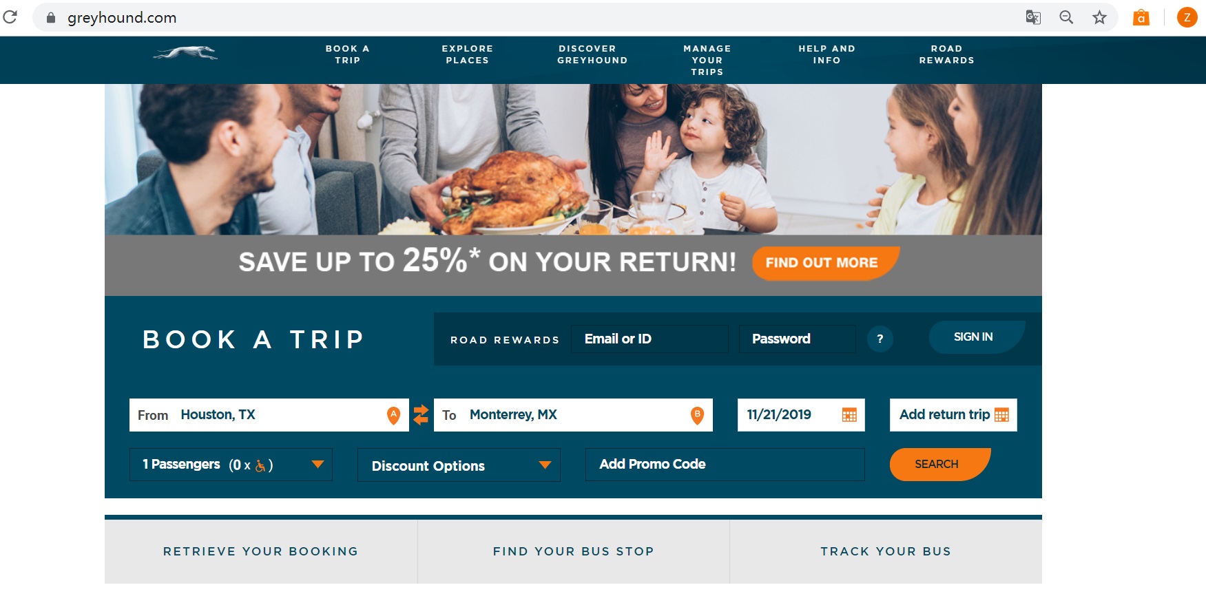 于是就买了从休斯顿到墨西哥 Monterrey的车票。