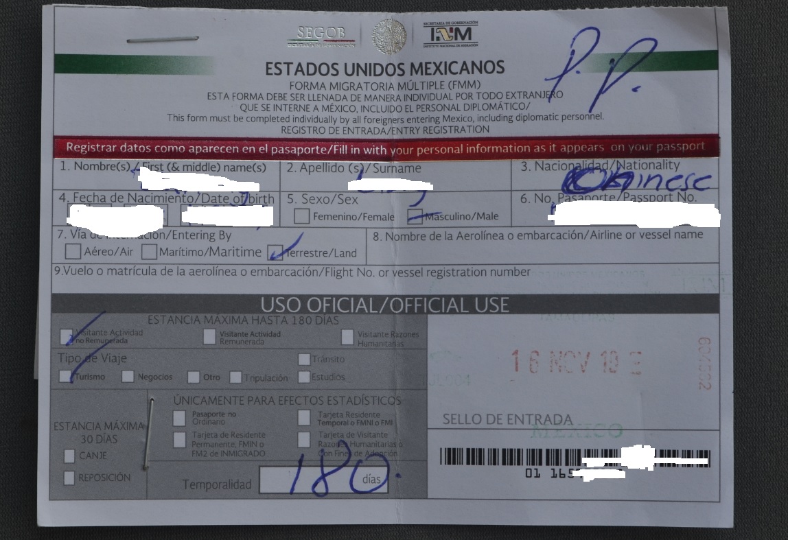 30美金的缴费收据,后来听小伙伴说,其实从美国过境到墨西哥是不需要签证,也不需要交这30块钱的,但是要看个人的讲价能力和沟通能力了。