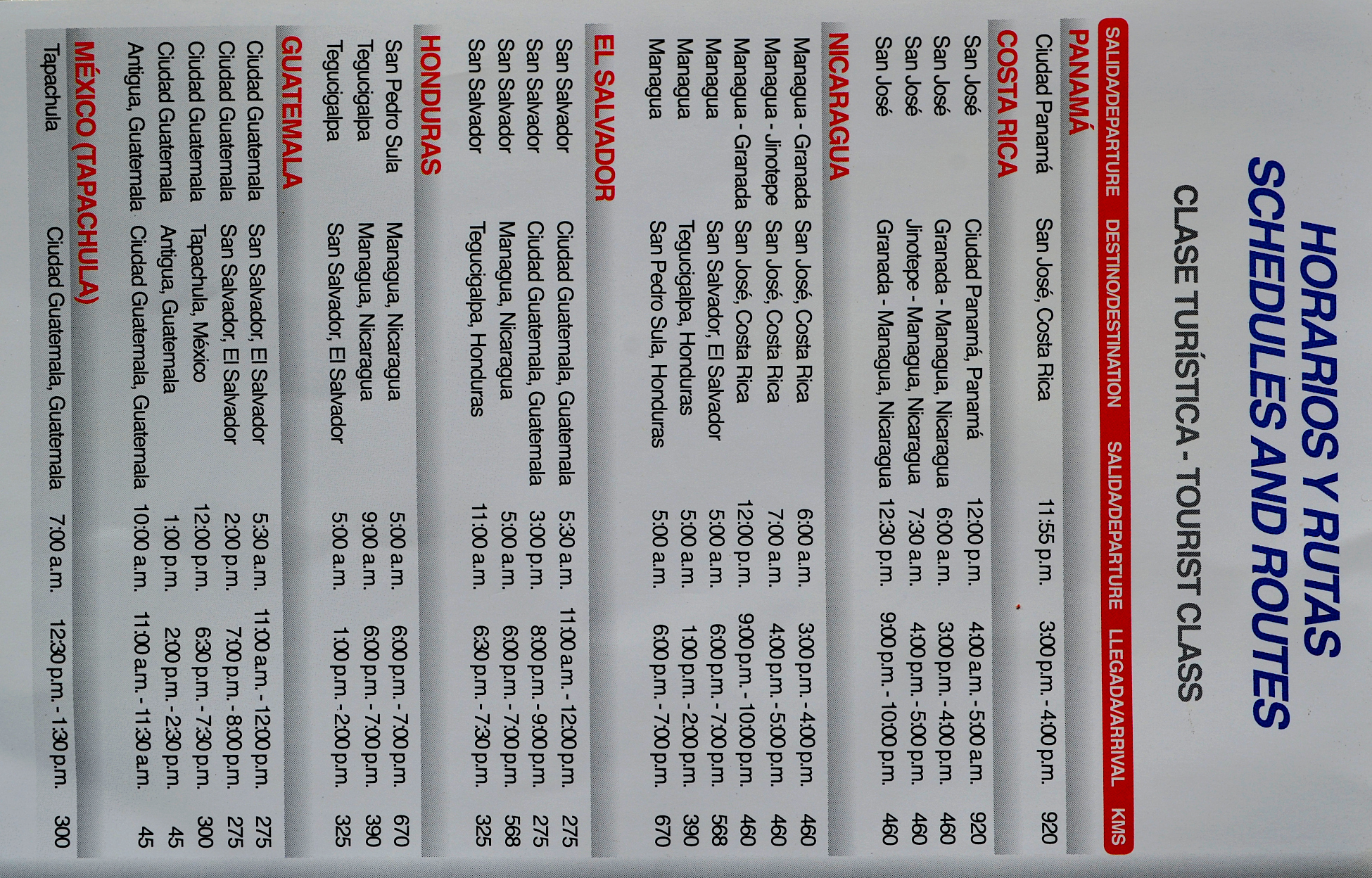 Tica bus 从萨尔瓦多出发时间是11:00AM, 耗时 7.5小时,票价20美金,在洪都拉斯首的tica bus车站,距离市区中心Palmira hostel 9公里(晚上找出租车,可能有问题)。