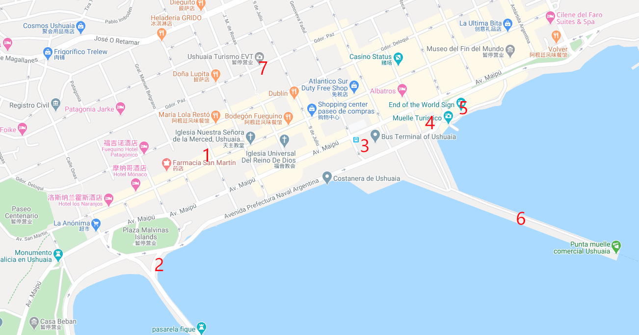乌斯怀亚的市区都不大,主要景点步行可以解决。