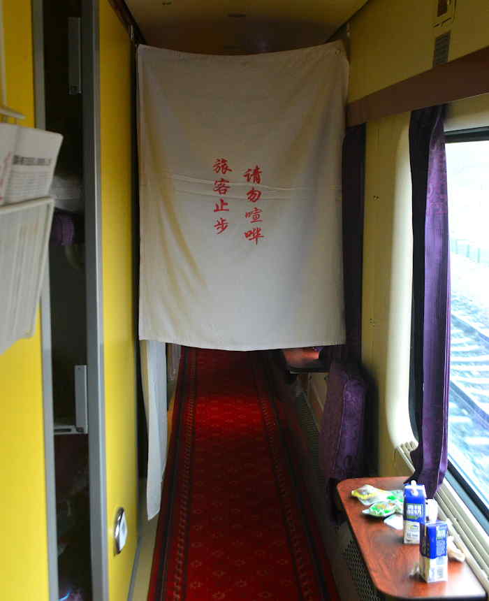 在西宁补到的卧铺,其实是车上工作人员的车厢,临时用布帘隔开的4个房间,一共只有24个床位