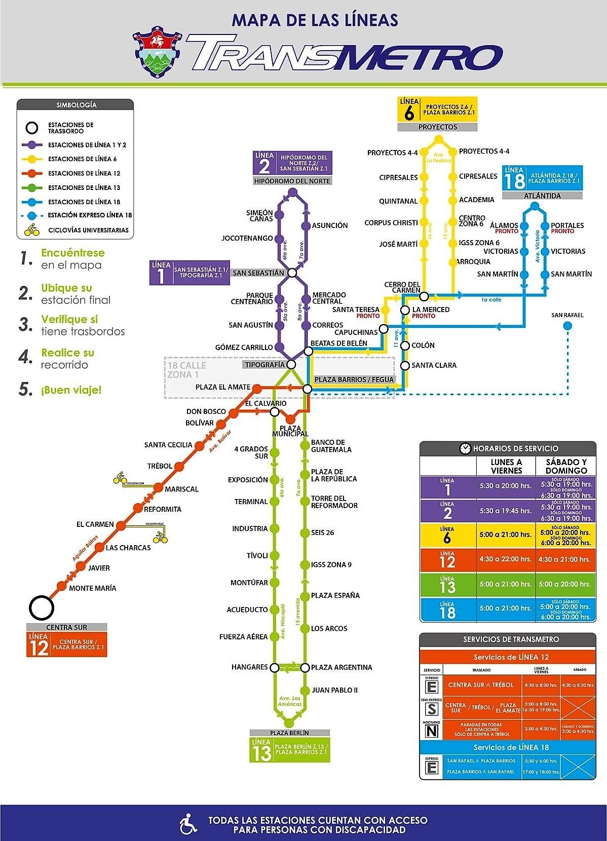 危地马拉城的地铁图,中心枢纽就在铁路博物馆附近的plaza barrios站。