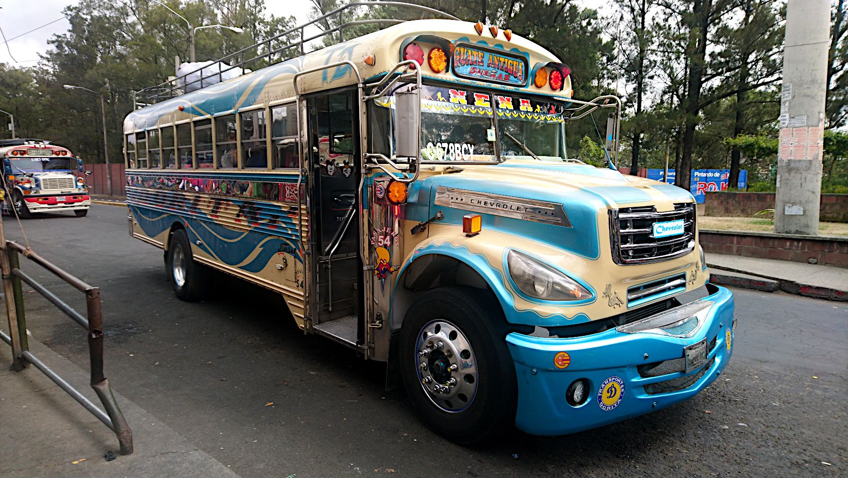 去安提瓜的chicken bus停靠点,下了天桥,在路边等候就可以了。