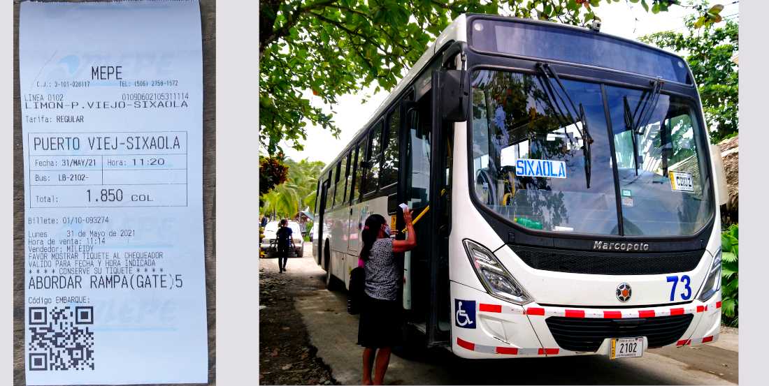到边境城镇 Sixaola,从早上6:30AM---19:30PM, 每小时一班,行程1小时 ,票价1850哥斯达黎加币 (可以在bus停靠处旁边的售票处购买,或在车上现场买票).