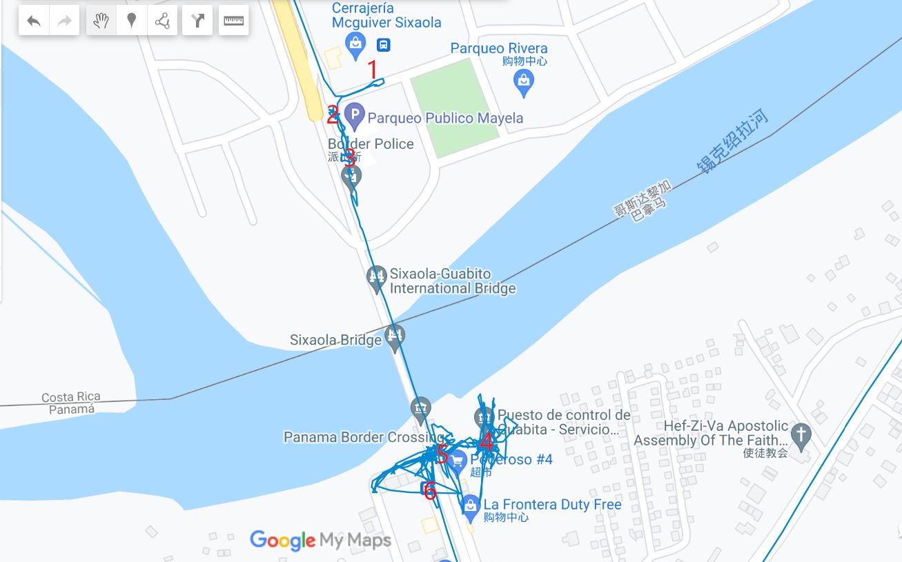 这次陆路过境的详细GPS轨迹图(每一秒钟,都有记录啊),放在如下地方,可打开google地图的同学,可以点开查看。