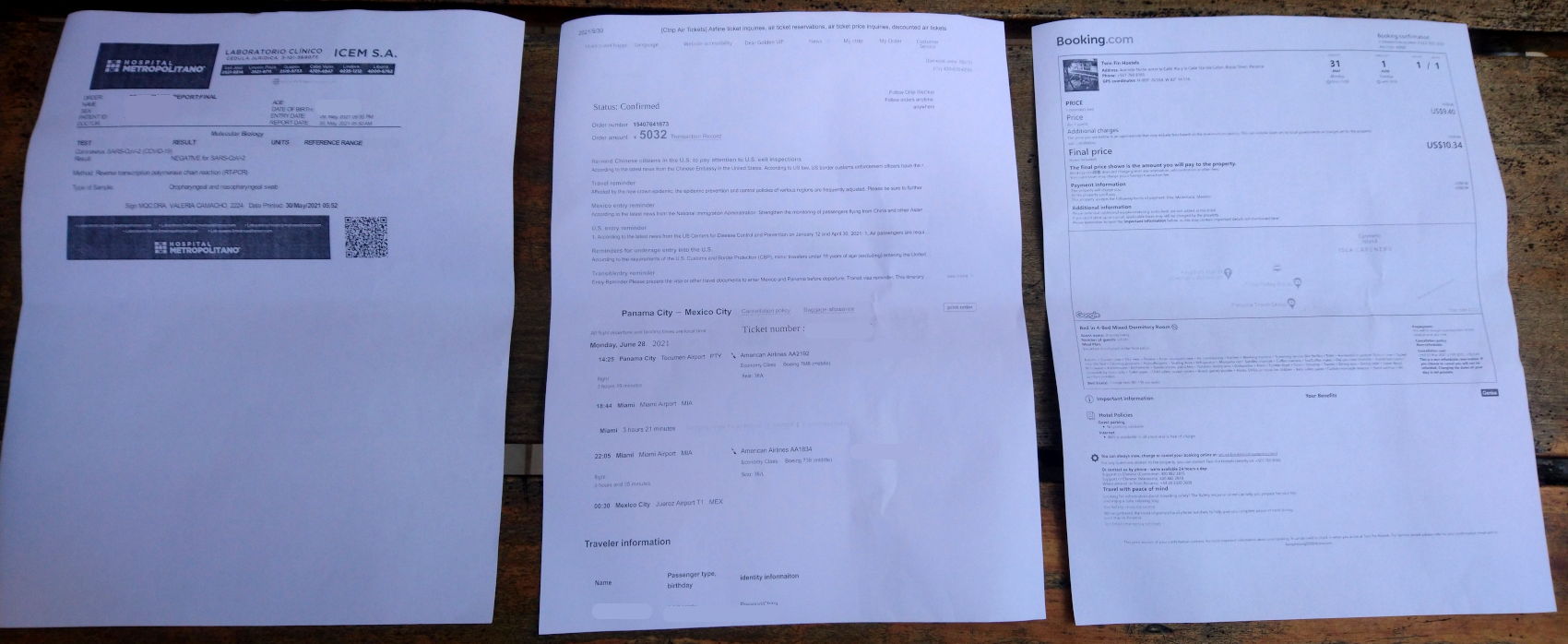 上图右,为在bocas del toro岛上预订单小旅馆的预订单,徐然不检查,但是也一起打印出来吧。