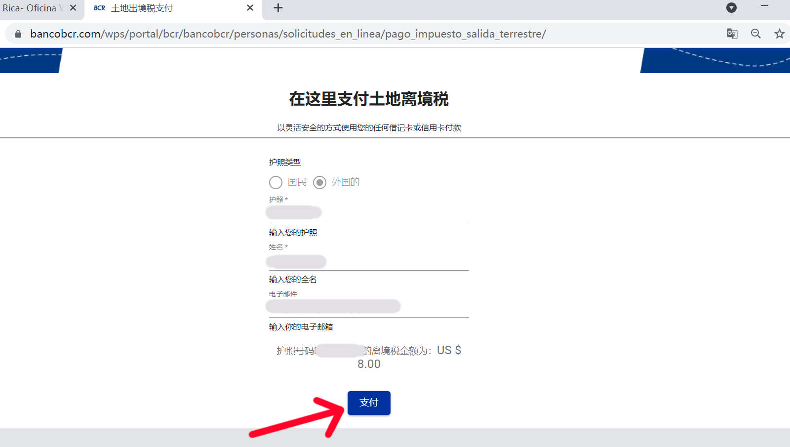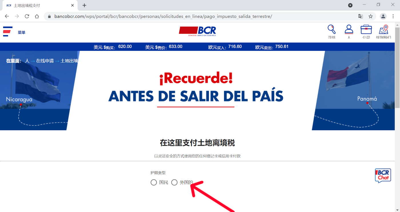如何在银行的网页上自助支付哥斯达黎加的离境税 ---how to pay the Costa Rica exit tax on the bank website