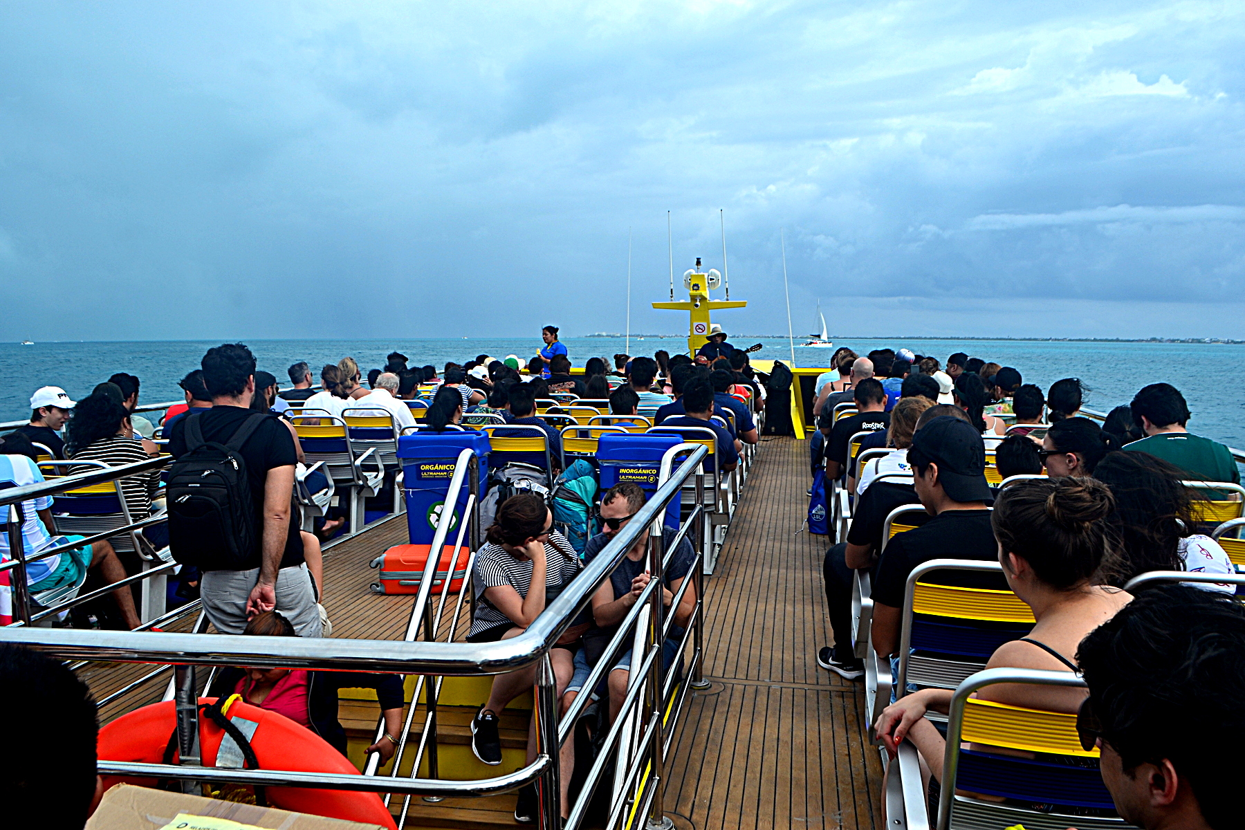 可在市区中心的tulum大街上公交车停靠点,拦截驶向背面的R-1号公交车(票价12墨币/次),到达puerto juarez码头。在此码头处,有快船到达姆赫雷斯岛,单程票价160,双程票价300,行程耗时25分钟 。