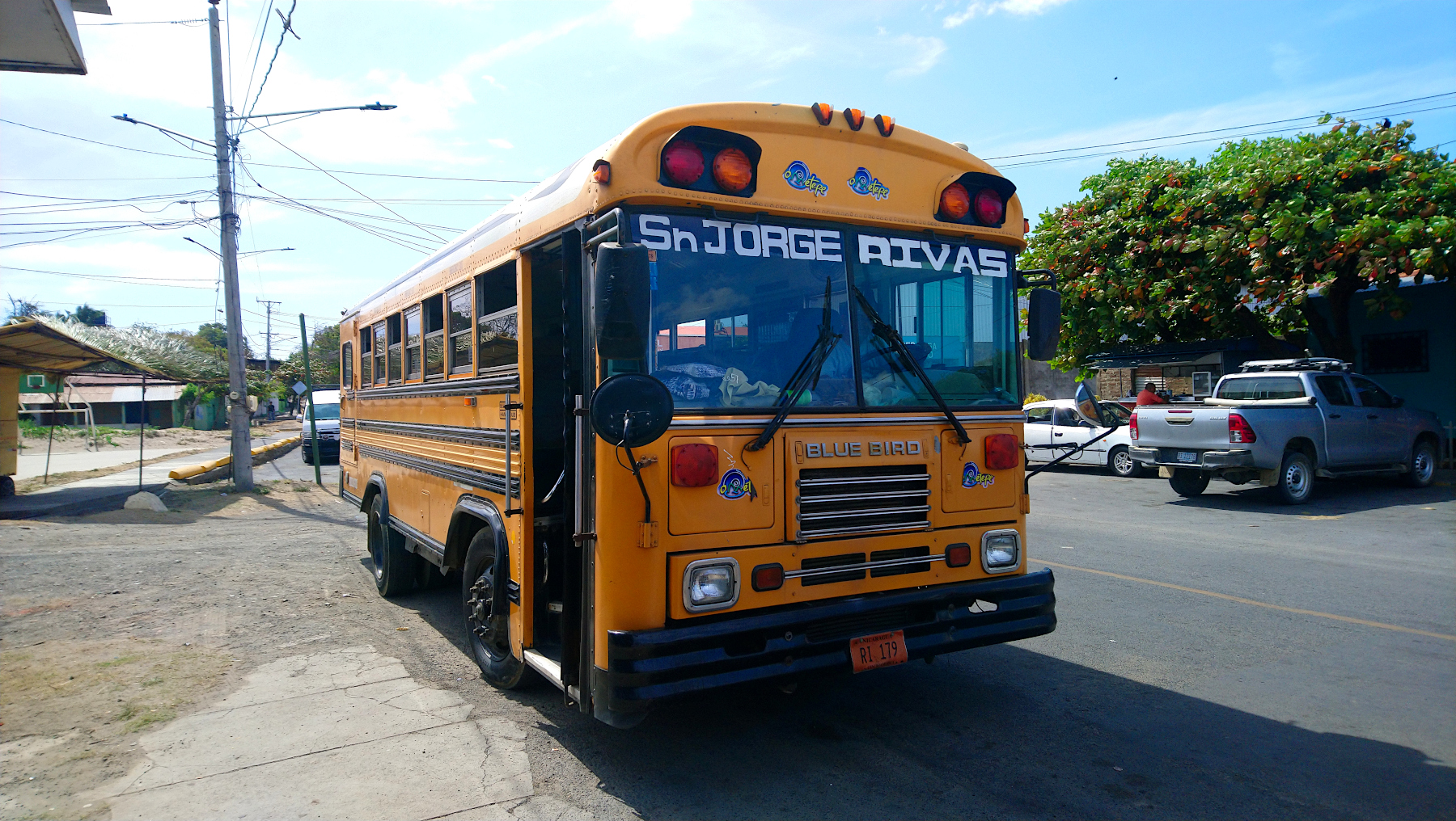 从granada到rivas有chicken bus(50尼币,2.5小时),从rivas车站有公交车到达san jorge码头, 20尼币,(周六,日,无公交车,打车1美金或30尼币)