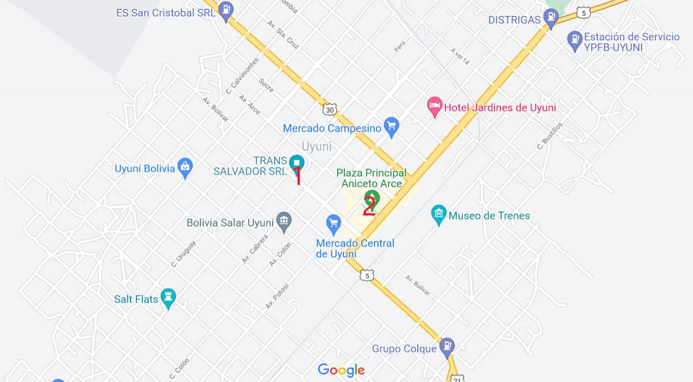 入境后,车子继续往前开,直到玻利维亚的Uyuni,下图为Uyuni地图。