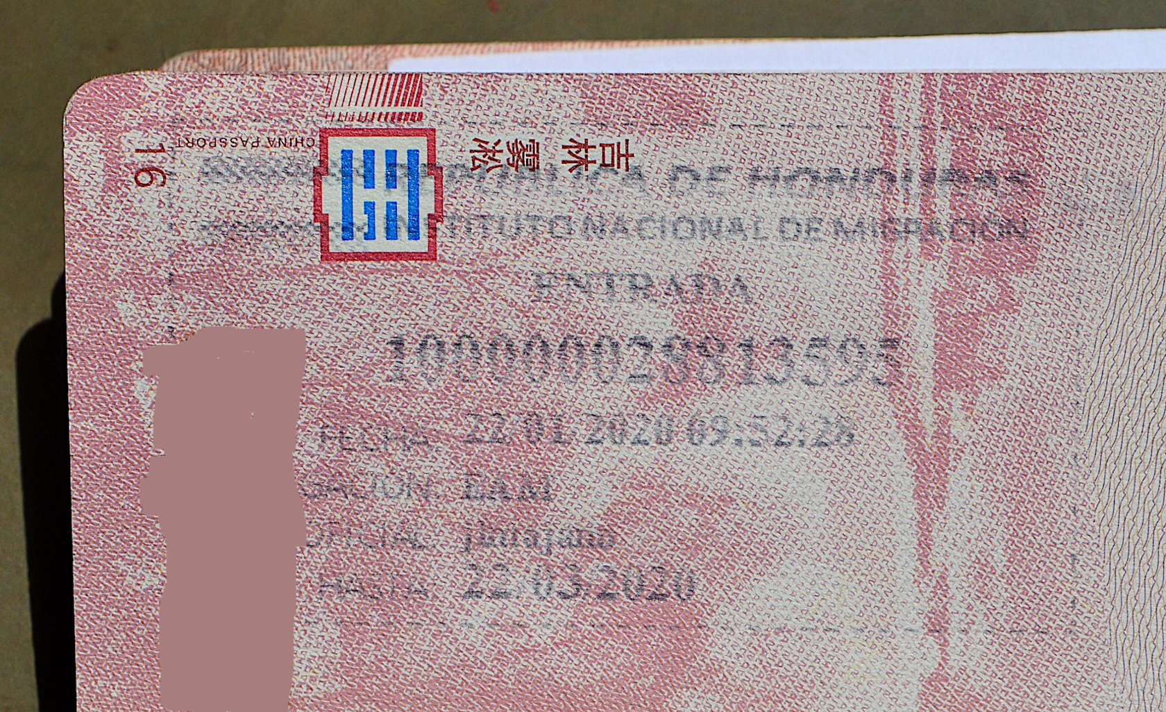 洪都拉斯入境章,是用打印机打印的 , 停留期60天.